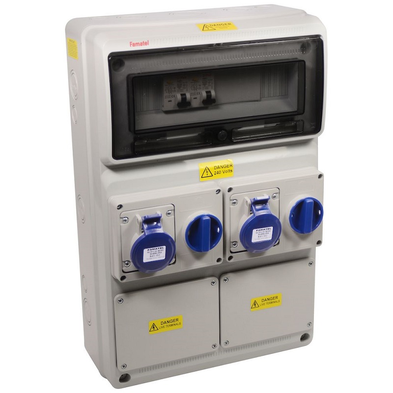 Famatel Caravan / Campsite Electric Hook Up Unit 2 Way 16A Switched Interlock Socket + Meter – NEWCAV2/M